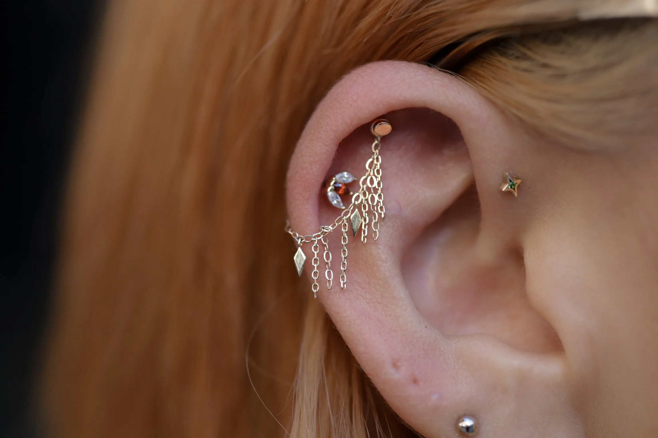 - Ear Piercings: Lobe, Helix, Tragus, Rook, Conch, and more.
